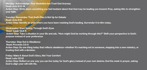- Acknowledge your concerns but don’t let them stop your obedience.Like Ananias, it’s okay to have questions. But faith means trusting God even when you don’t understand.
