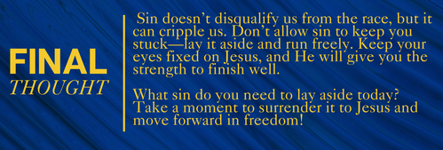 - Run with Endurance – Move forward in faith, refusing to let sin hold you back.